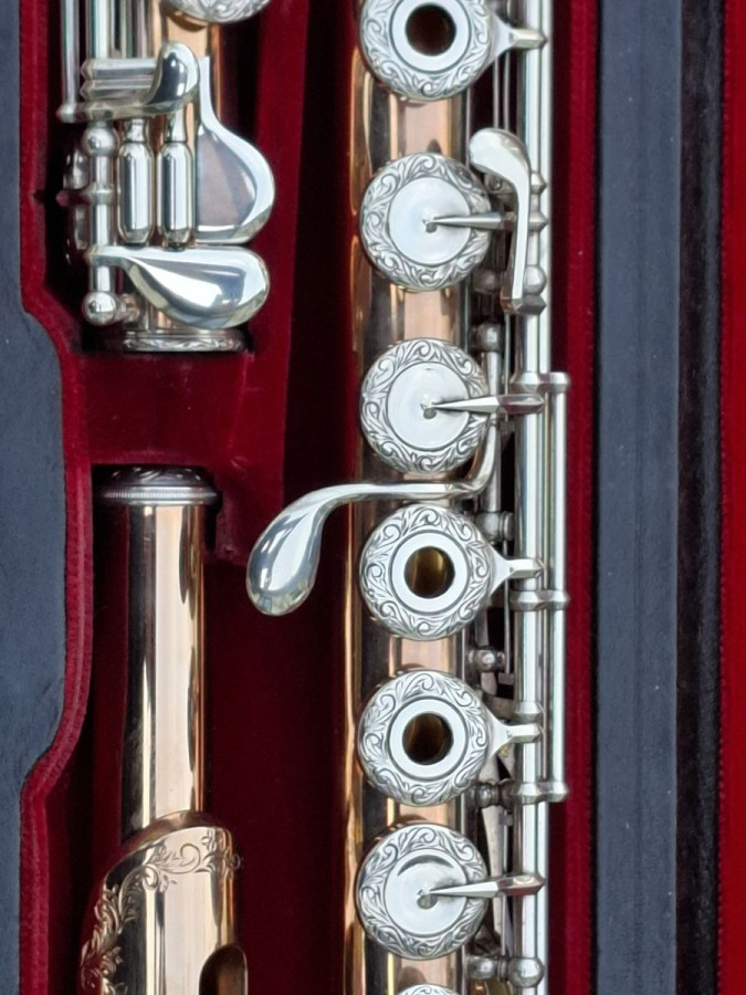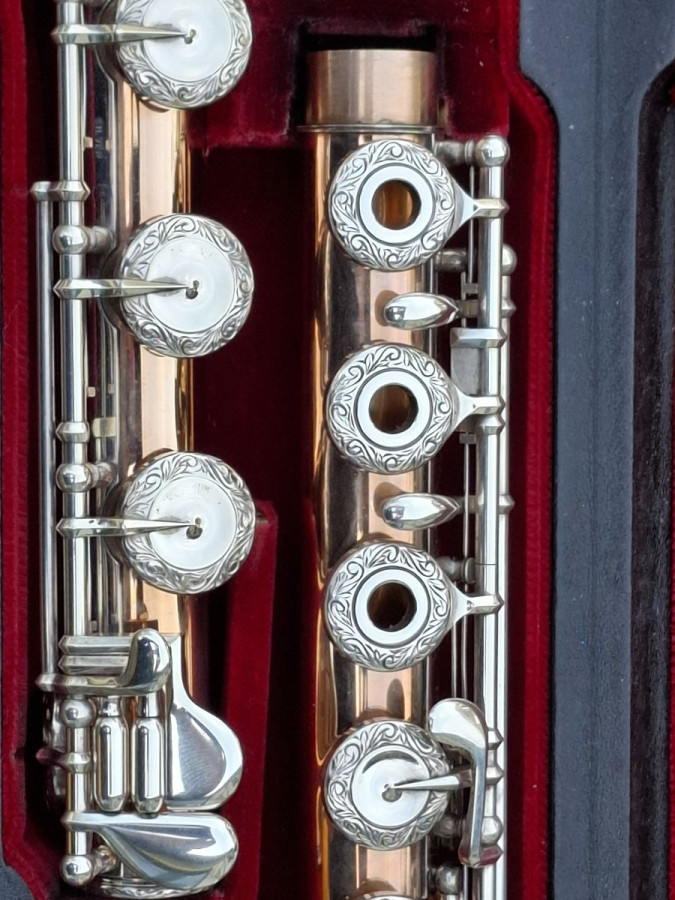As You might imagine this Flute plays with a rich, warm, velvety sound quality. The Mechanism is Super Smooth and It only needs a feather light touch.