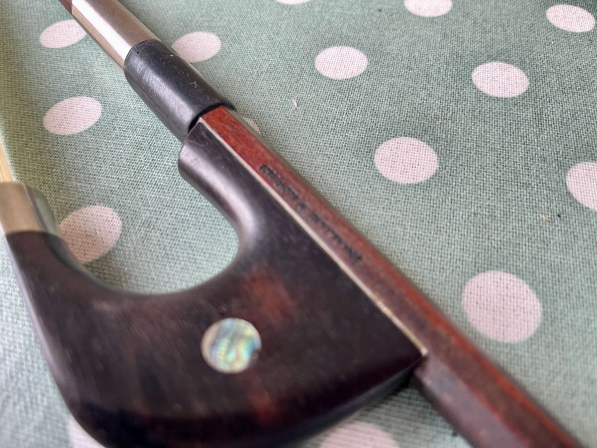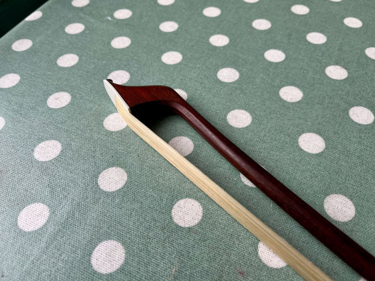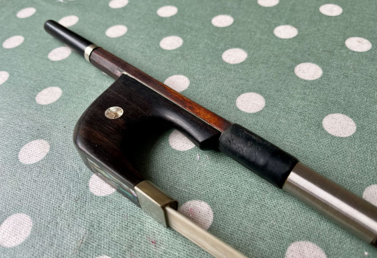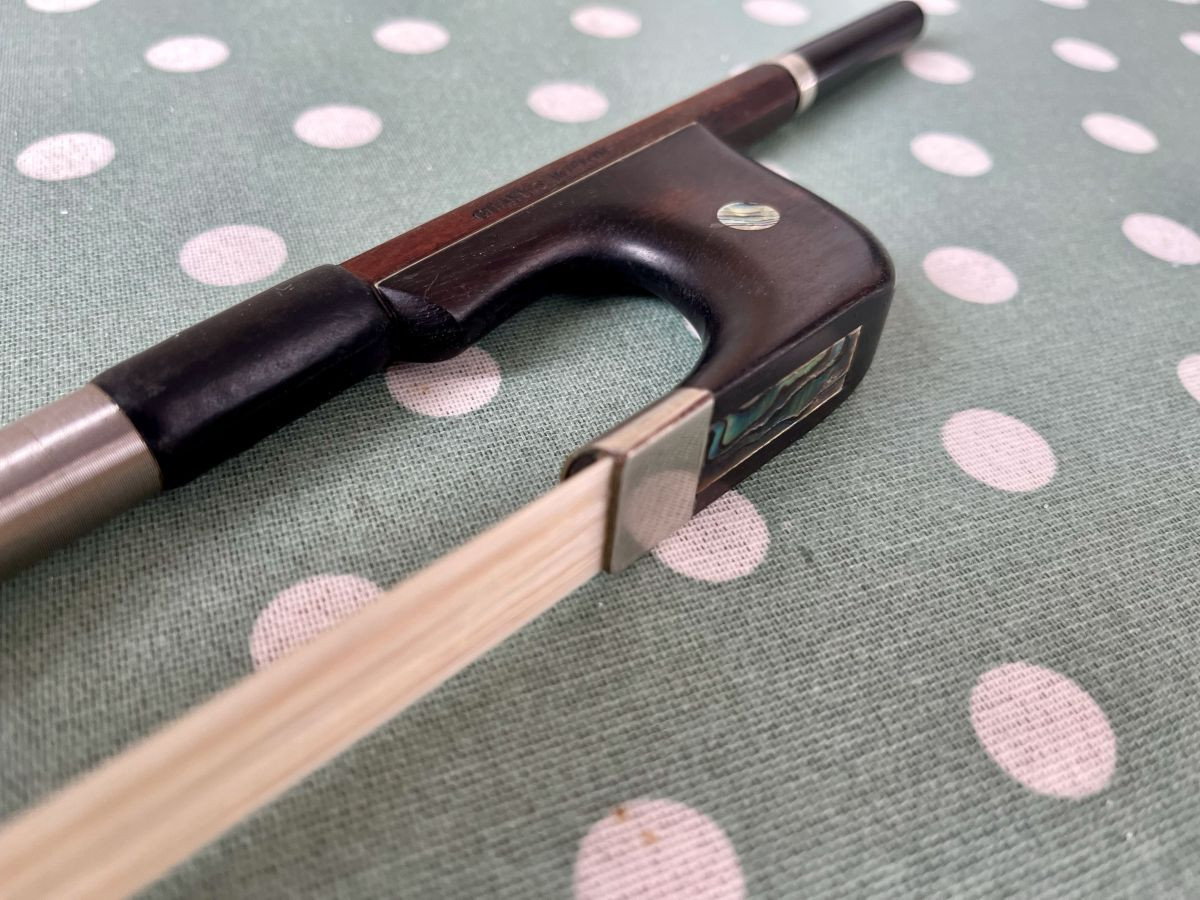 Pernambuco stick, nickel mount, ebony frog with MOP inlays. Weight 140g.