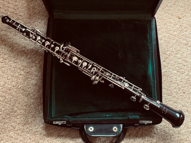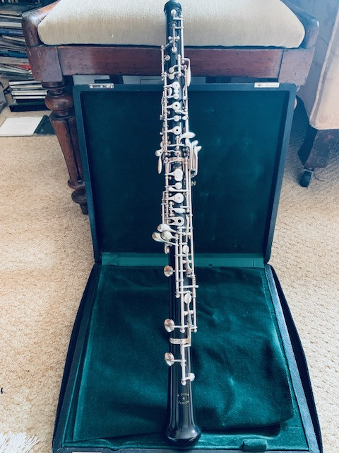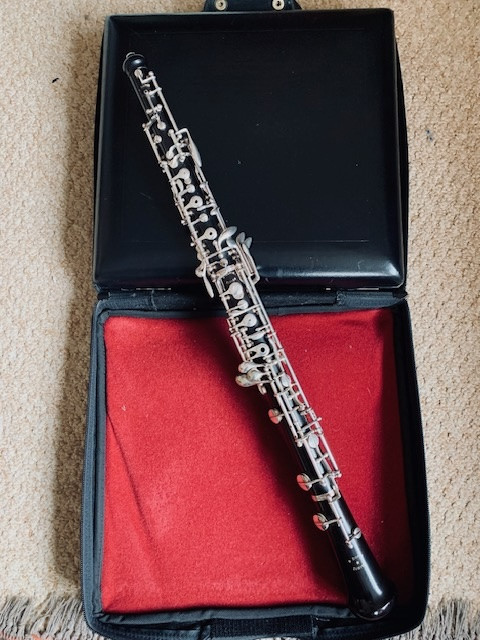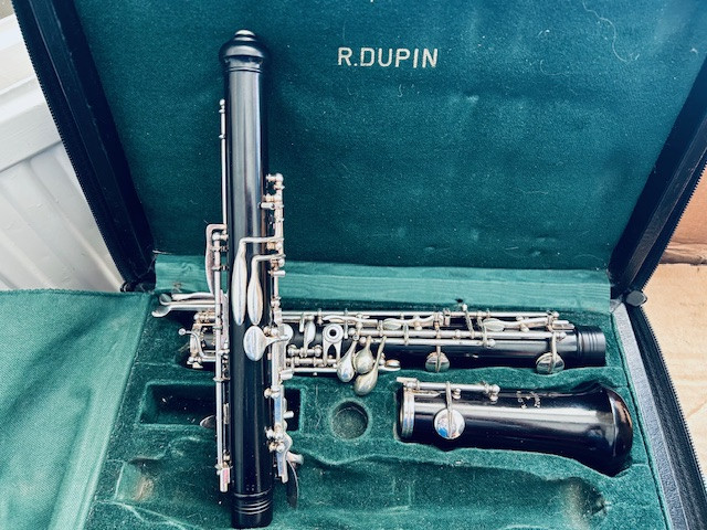 On the market, the ideal choice for the UK. This dual system oboe was custom made by the legendary Roland Dupin,who passed away two years ago, so with collectors value. The Dupin African Blackwood is naturally seasoned over decades, as a result the Dupin Oboe will last for a player's lifetime. The best of all the oboes that I commissioned over the years.The third octave key is placed so that the player has the best of both worlds with the well rounded conservatoire B Flat and the mellow thumb plate C fingering as additional choices. Fully serviced, it plays sweetly in the upper register, easily and quietly in the lower register with optimum balance, range and depth of tone. Only selling because I have enduring hand injuries.It will suit any aspiring student or professional world -wide and especially in the UK. I can provide expert complimentary after-sales guidance via Zoom. Independently valued as below. Double oboe case, leather outer cover, zip pocket v good condition.Come try it