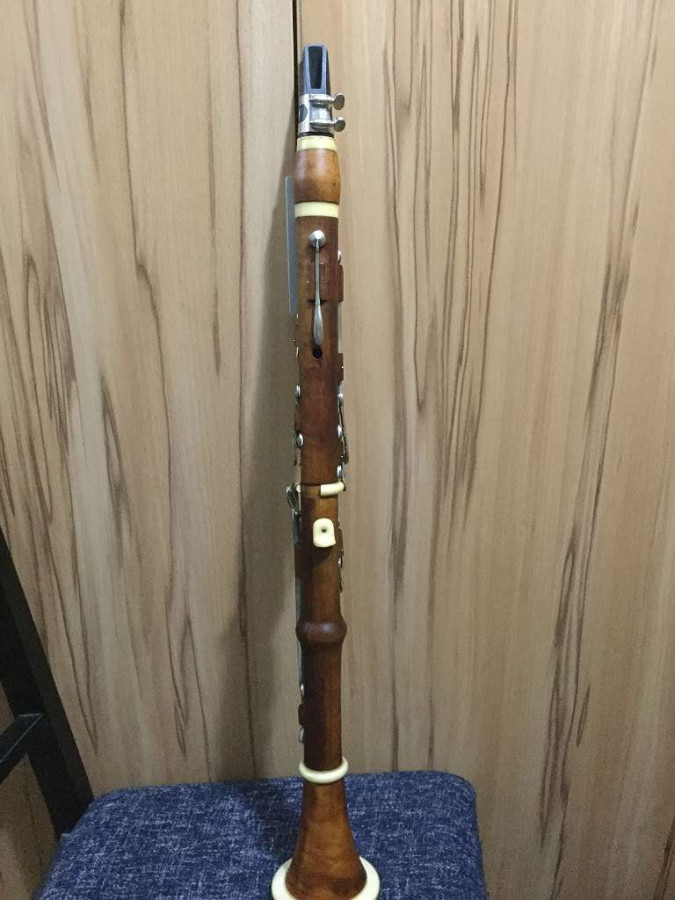 15 keys in total, non-original boxwood mouthpiece (unmarked) (not yet restored in good condition.) Length 675mm with mouthpiece, and 605mm without Please note that an instrument of this age will have some scratches here and there on the body. I can see evidence of cracks on the bell, and on the body but nothing major. The keys are in very good condition. Please note that there are rollers on the right bottom keys. This was a very unusual feature on such clarinets, rarely seen these days. A piece of ivory middle part is missing and on the bottom of the bell The instrument is 5-piece. I am not sure if it is Low Pitch (modern concert pitch, A = 440) …