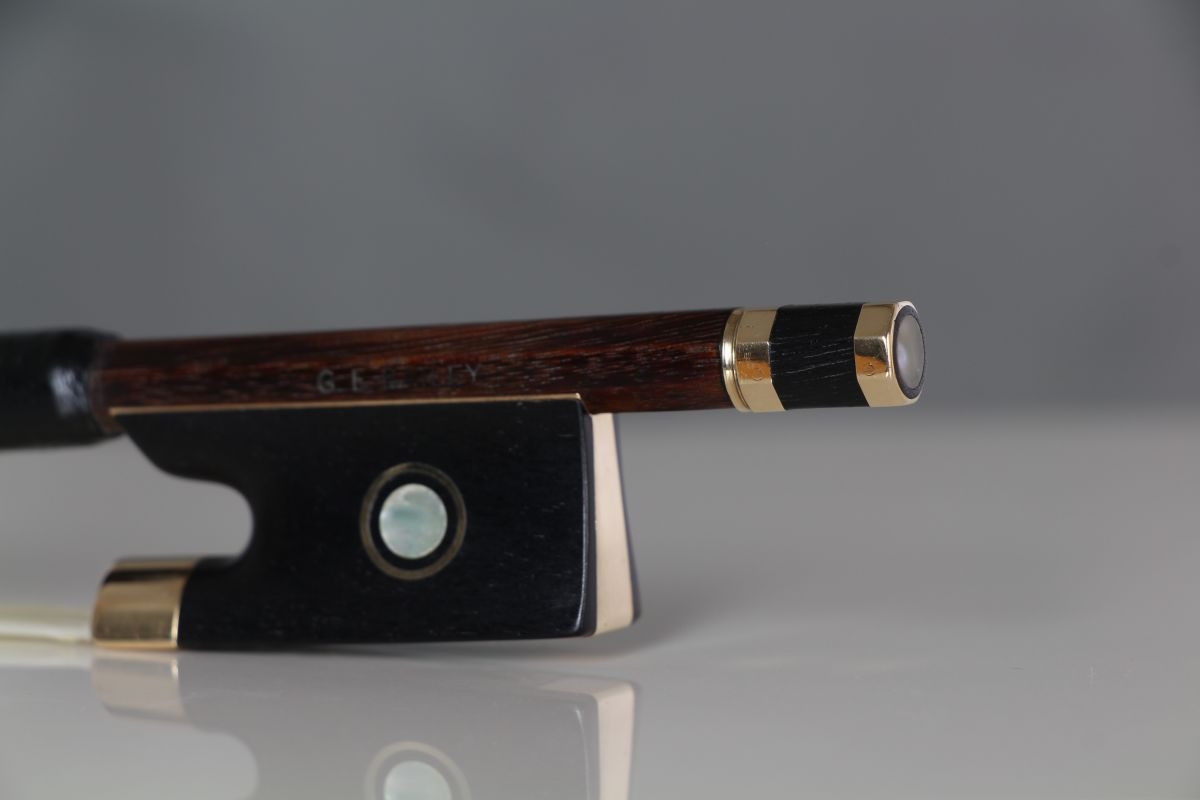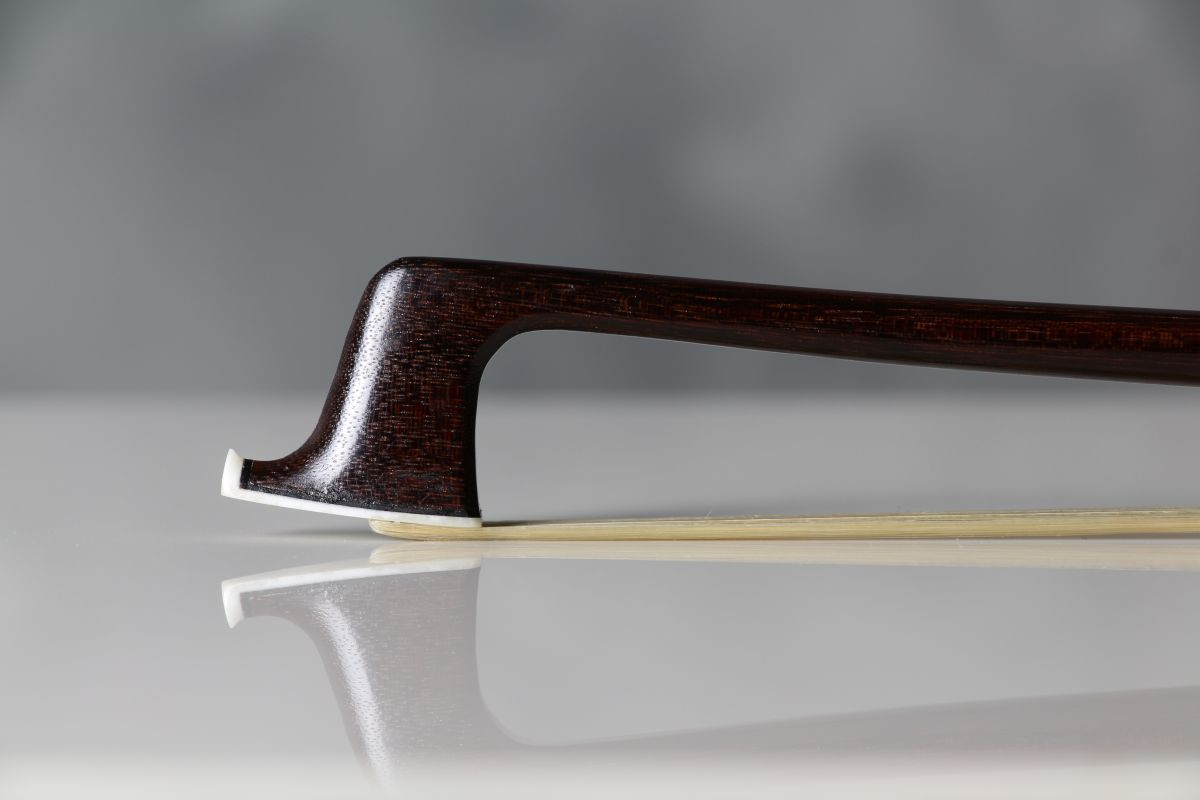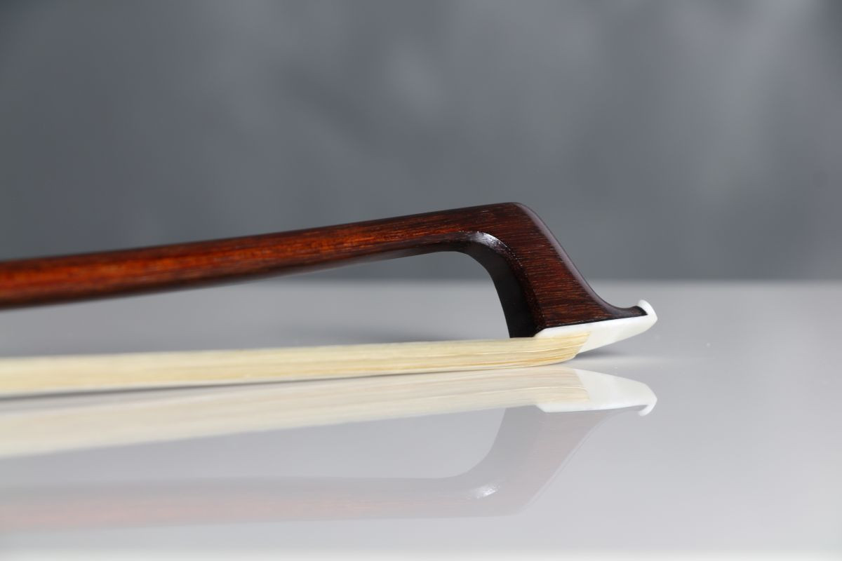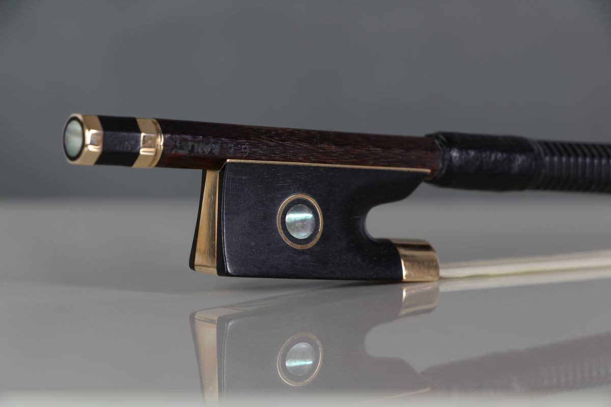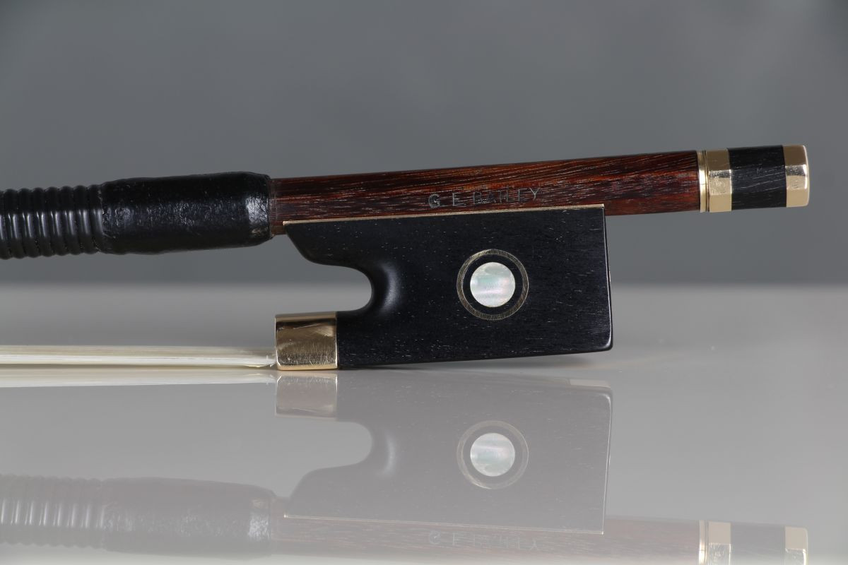 Gordon Bailey was trained by Percival Bryant, who worked with the George Withers & Son shop in London. The bow has nice dark pernambuco, and beautiful metalwork in the button. The stick is strong, comfortable and well balanced. It is a extremely serviceable for highest-standards orchestral playing.