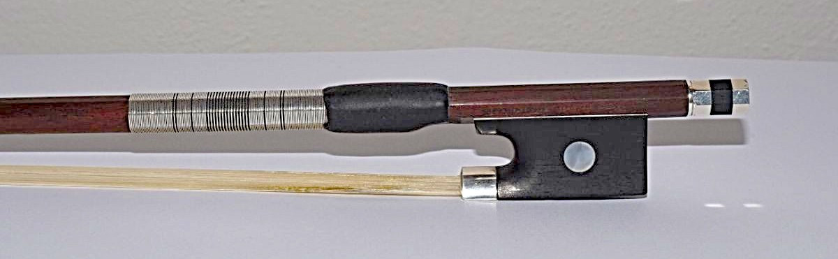Full size beautiful pernambuco wood violin bow, weight 62 grams, balance point 26 cm from bottom, silver mounted. Handcrafted in Pierre Guillaume’s workshop in Brussels, the J.P. Bernard line of bows are outstanding, marked by superb workmanship and delivering brilliant sound projection and fine articulation. This bow is in very good condition. See photos. It is a great bow and plays very well indeed. Selling because surplus to requirement. Priced to sell, price includes insurance and courier costs but not taxes if any in purchaser's country. Contact me by text, whatsapp or email.