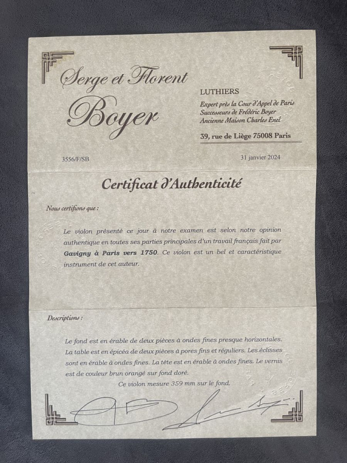 Hello, I am selling an old French Violin GAVIGNY Vieux Paris 1750 with Certificat see photos.
