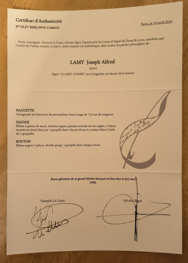 It comes with a certificate from the Cabinet d'Archetiers Experts Jean-Francois Raffin.