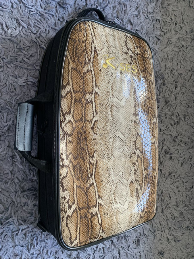 Faux leather snakeskin pattern. Removable backpack straps. Internal and external accessories pockets. Foam inserts to hold instruments in position.