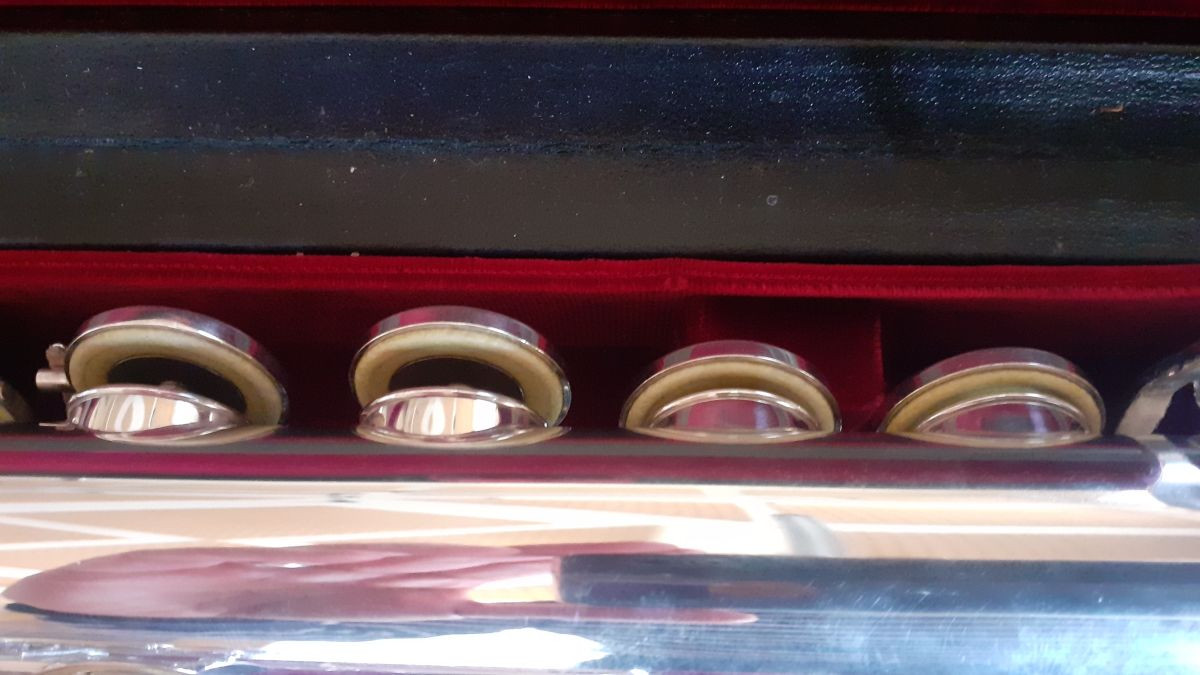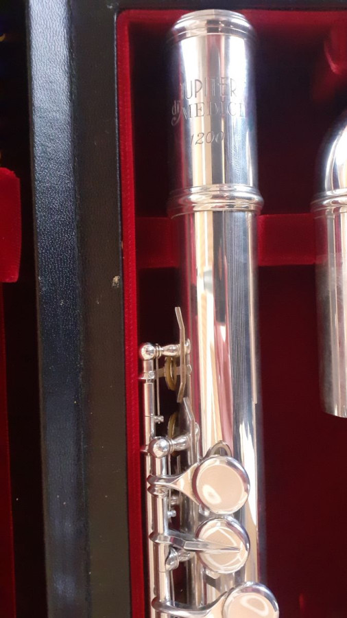 Jupiter Alto Flute, Di Medici Model 1200 with DOUBLE STERLING SILVER HEADJOINT, body and footjoint in nickel silver, offset G, split E mechanism, recently serviced and ready to play! Includes original case, cover, and cleaning rod.