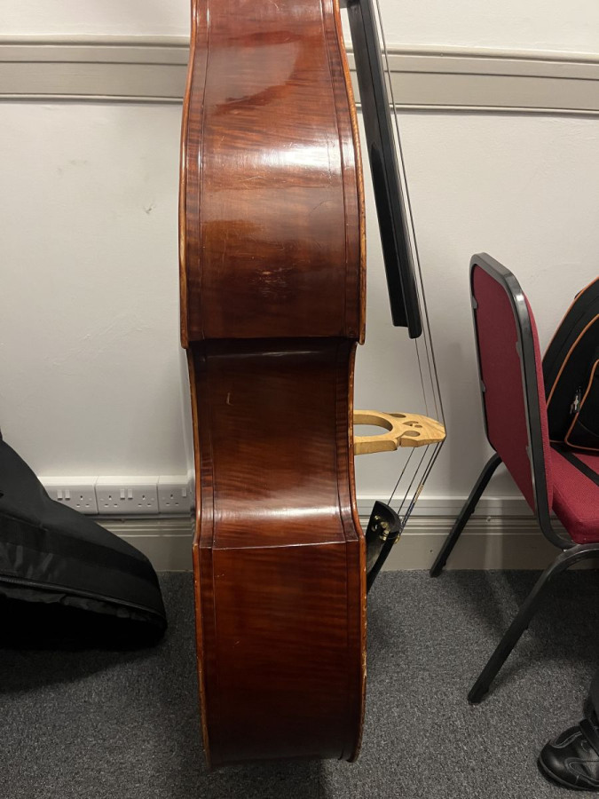 Beautiful instrument for a very reasonable price. Body imported "in the white" and then finished to a very high standard by Malcolm Healey; a renowned maker, repairer and setter-up of basses, based in Surrey.
