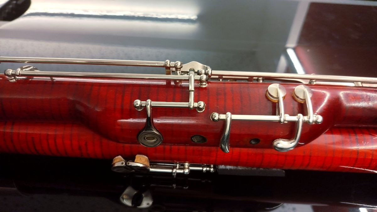 For sale: Heckel bassoon with serial number 12xxx – a high-quality instrument with outstanding sound and projection. It has been upgraded with a high E key and was recently overhauled by Mr. Rieger, ensuring precise mechanics and excellent response across all registers.