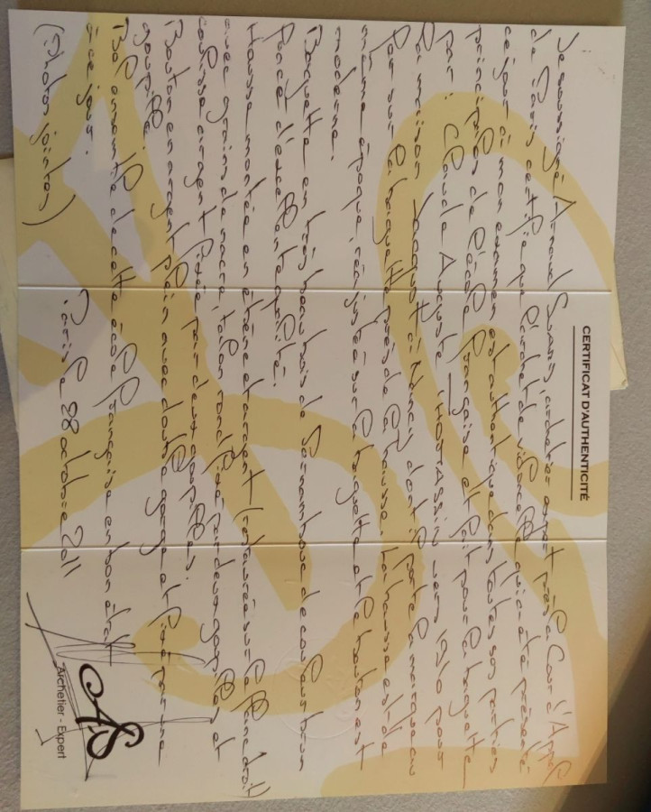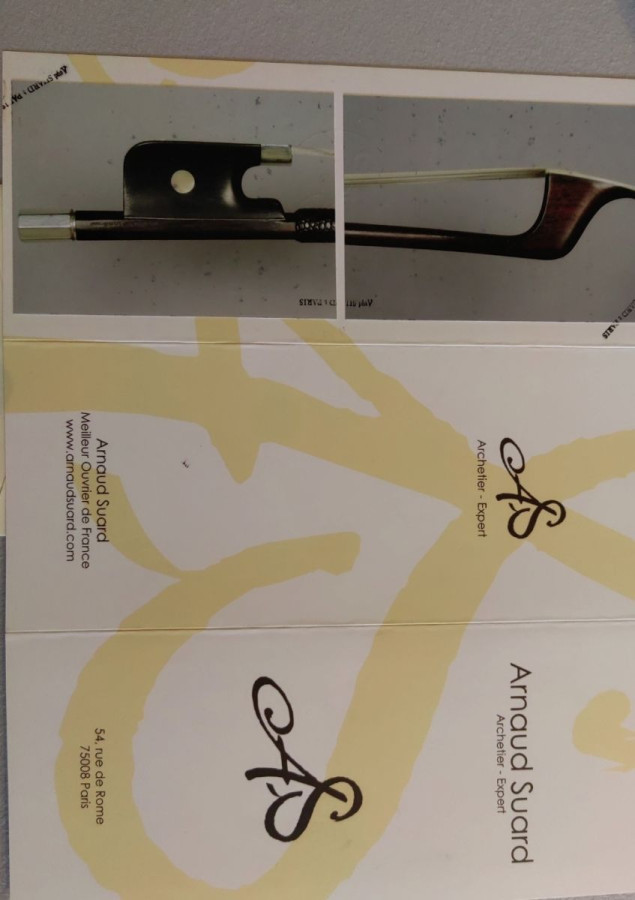Certification: Certificat d'authenticité fait par Arnaud Suard, archetier expert à la Cour d'Appel de Paris. L'archet a été fait pour la maison Jacquot à Nancy dont il porte la marque au fer près de la hausse.