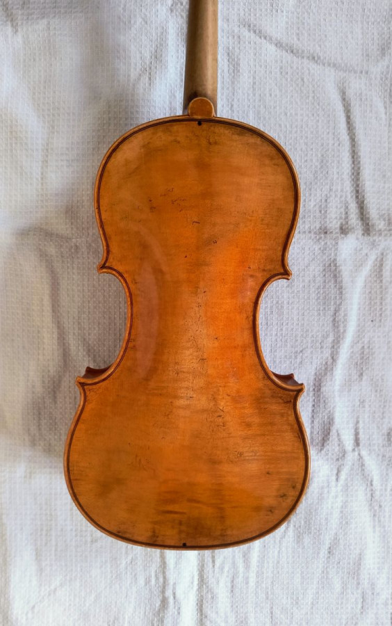 A very well made copy of a viola by Louis Guersan, french luthier active from c. 1725-1770 in Paris. Typical for that time, it is a small instrument with a body length of 39,4 cm.