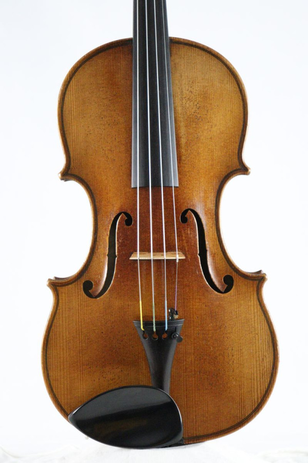 In ideal playable condition, Ebony tuning pegs matching Ebony tailpiece with adjuster, Teka style chin rest, fitted with Thomastik Dominant string set, fine Aubert bridge.
