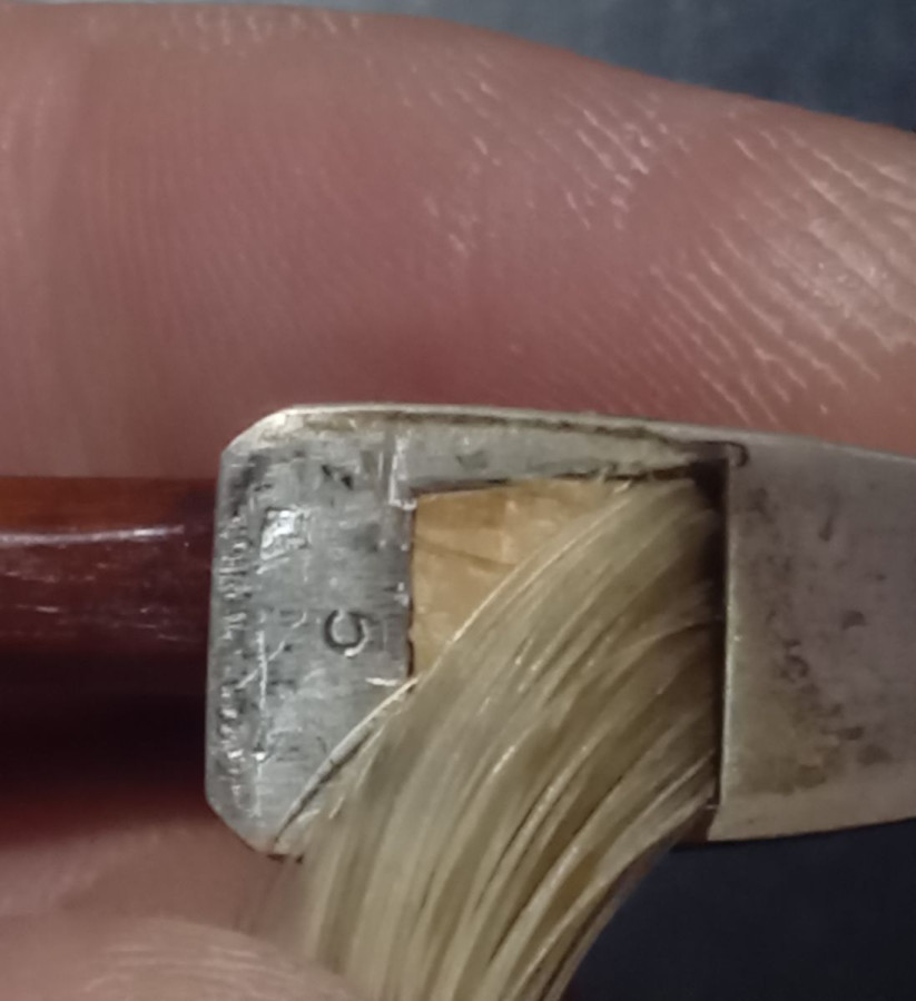 The stick (No. 5) was crafted in the 1930s by Barners, one of Hill’s prominent pre-war bow makers. The frog and fittings (No. 7) were made post-war by Watson, a master of mountings during the 1950s–60s at Hill.