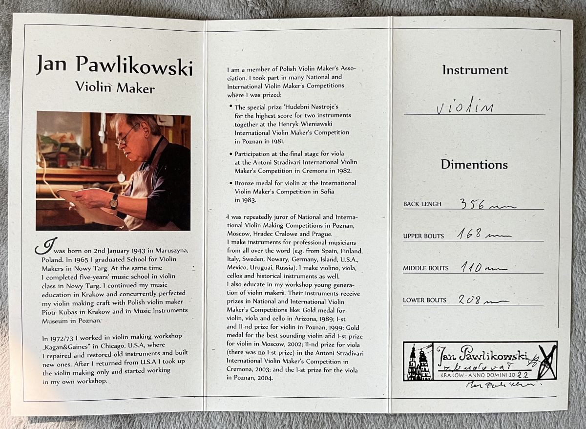Jan Pawlikowski Violin 2022