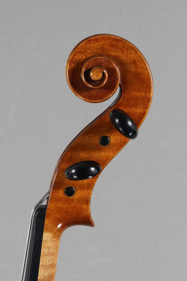 This viola is a fine and typical example by Elspeth Rowe in perfect condition. It is modelled in the style of Andrea Amati and it measures 40cm length of back (15 ¾ inches) which is the smallest size for good professional use.