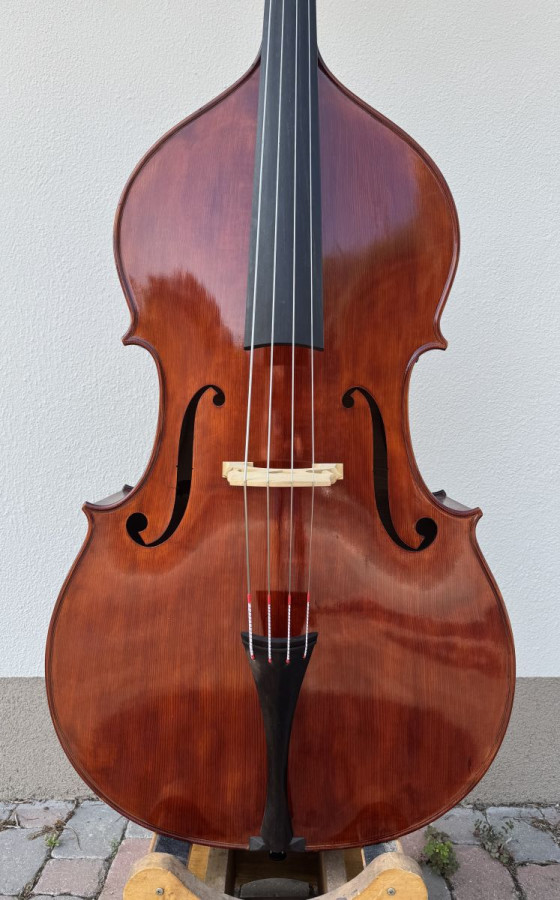 Great double bass from Sergio Scaramelli, Ferrara 2024. Model majestic in beautiful spruce wood, back curved, easy to play, great sound, stings 104,5 cm.. Perfect condition. Special price.