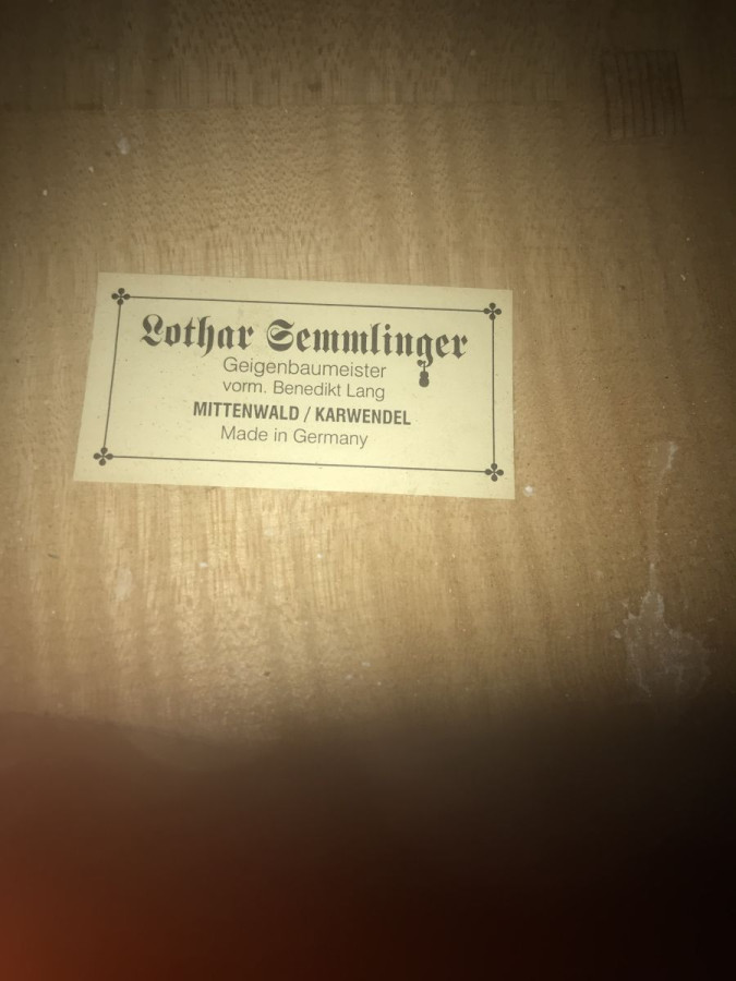 A rich sounding cello, made in the workshop of renowned luthier Lothar Semmlinger. The front is of fine grain and of a deep varnish and the back, ribs and neck are of a medium/deep flame. The overall condition of the cello is excellent. It has never been repaired and only has a few minor blemishes. This is a finely made instrument that would suit a student of any level or serve as an excellent back-up instrument for a professional musician. Includes a sturdy, 20yr old hard case and decent bow.