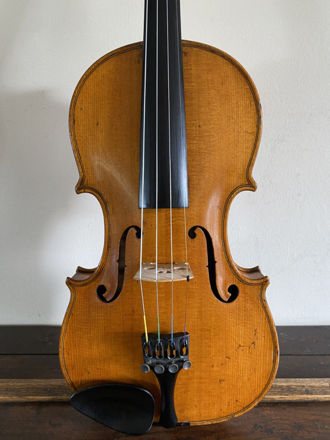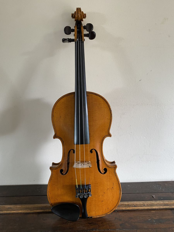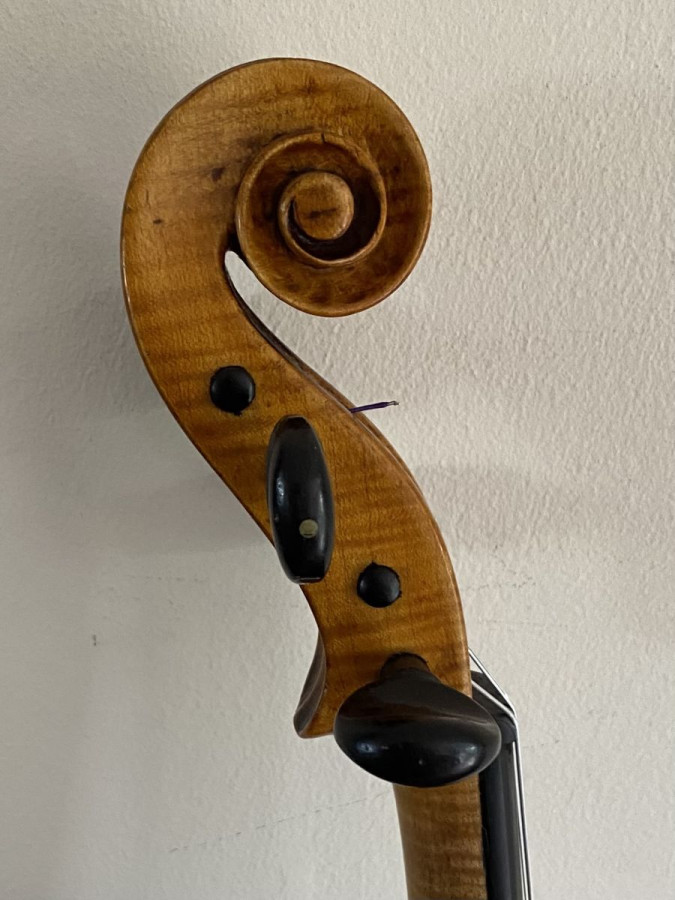 A fine sounding instrument which produces a deep mellow tone with good volume which is even on all the strings. The back length is 35.6 cms