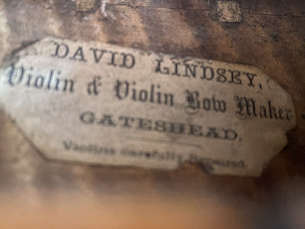 Fine English violin made by David Lindsey circa 1890 labelled,David Lindsey violin and violin bow maker Gateshead. This violin is in excellent playing condition having no cracks no peg box cracks no woodworm.It has a beautifully flamed two piece back ribs neck and scroll. The varnish is Amber in colour and completely original. The violin is fully blocked lined, the purfling is neatly inlaid the instrument having good edge work.
