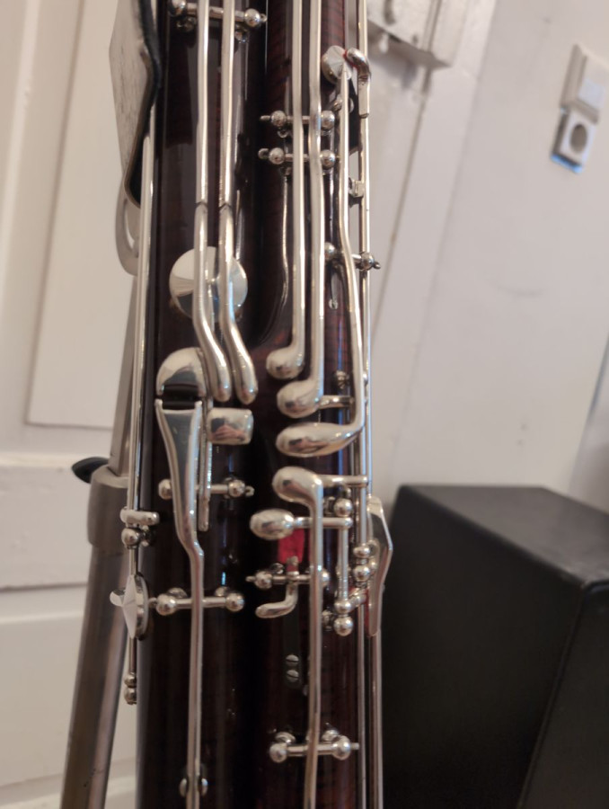 Laut Angaben von Herrn Püchner handelt es sich um das Püchner-Fagott, S.Nr. 8672, Modell 24, aus dem Baujahr 1977 (siehe Bild).