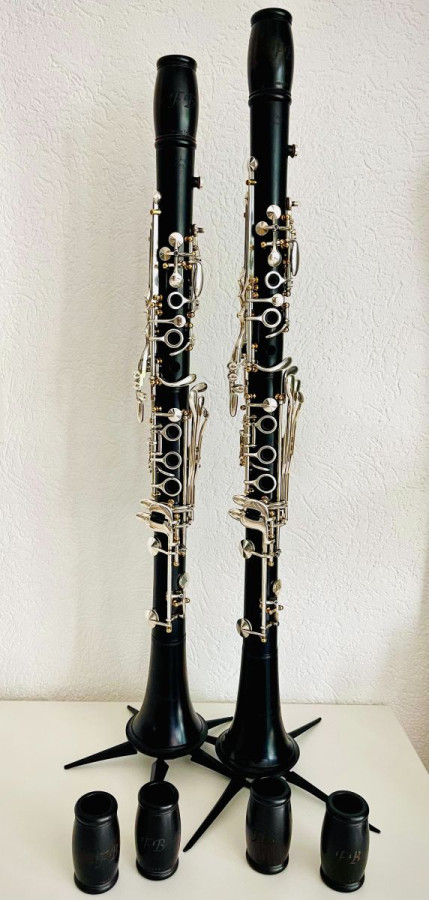 Seggelke 1000+ Bb and A made in Grenadilla wood, silver keys, golden pillars, 2 barrels 65 and 1 barrel 66 for Bb and 2 barrels 65 and 1 barrel 66 for A. The instruments have been played in orchestra for few years and are in extremely well conditions and intonations. At present, you can try them at the Basel Woodwind Workshop in Basel (Switzerland), where Claudiu will help you to make all the adjustments you want and need. For more questions or informations don’t hesitate to contact me or Claudiu. Don’t miss this chance to find a very good pair of top quality instruments!