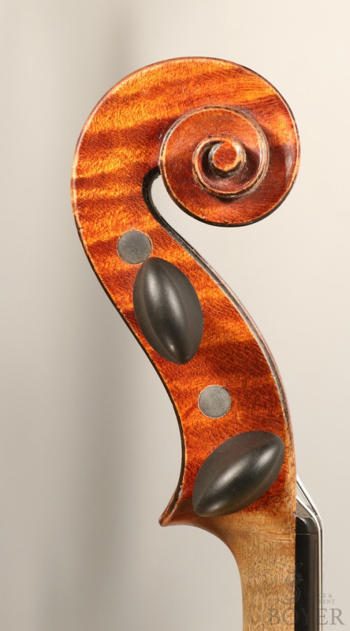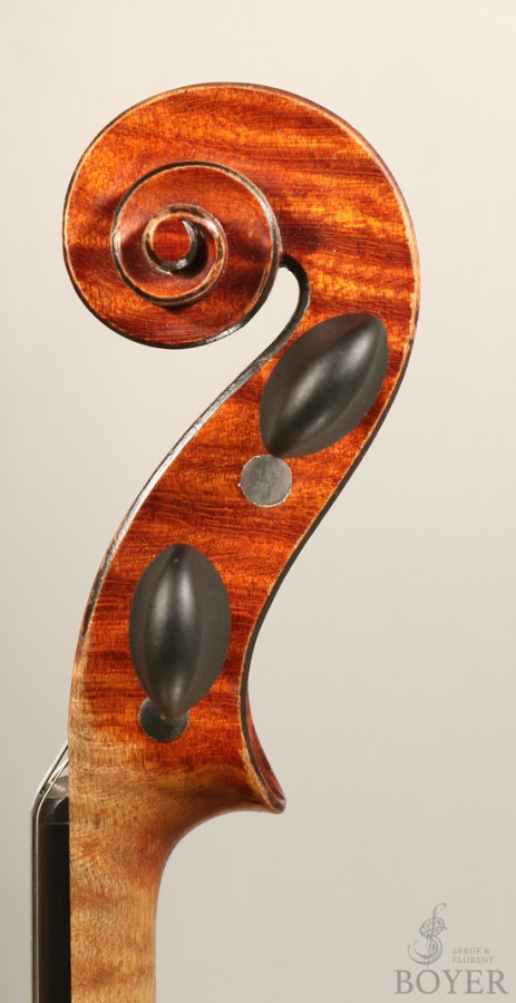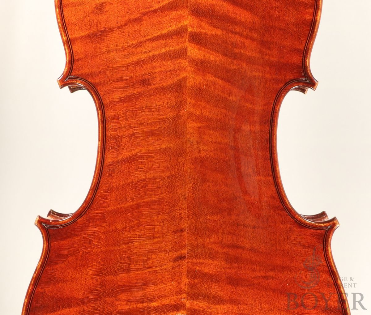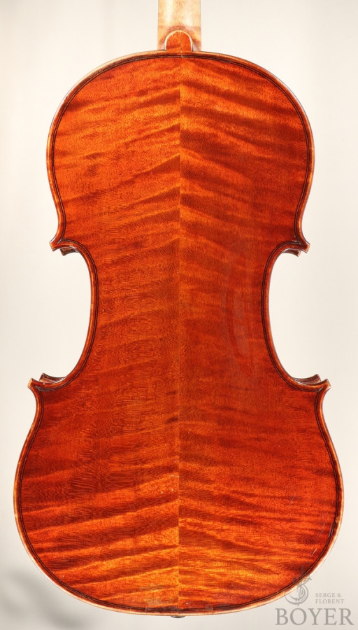 Fond : deux pièces en érable à belles ondes assez vives descendantes vers les bords.