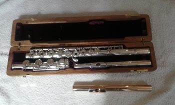 Specs:Sterling silver body and sterling silver keys, drawn tone holes, .016" tubing, Modern Powell Scale A-442, pitch, offset G keys, French cups, B footjoint with gi