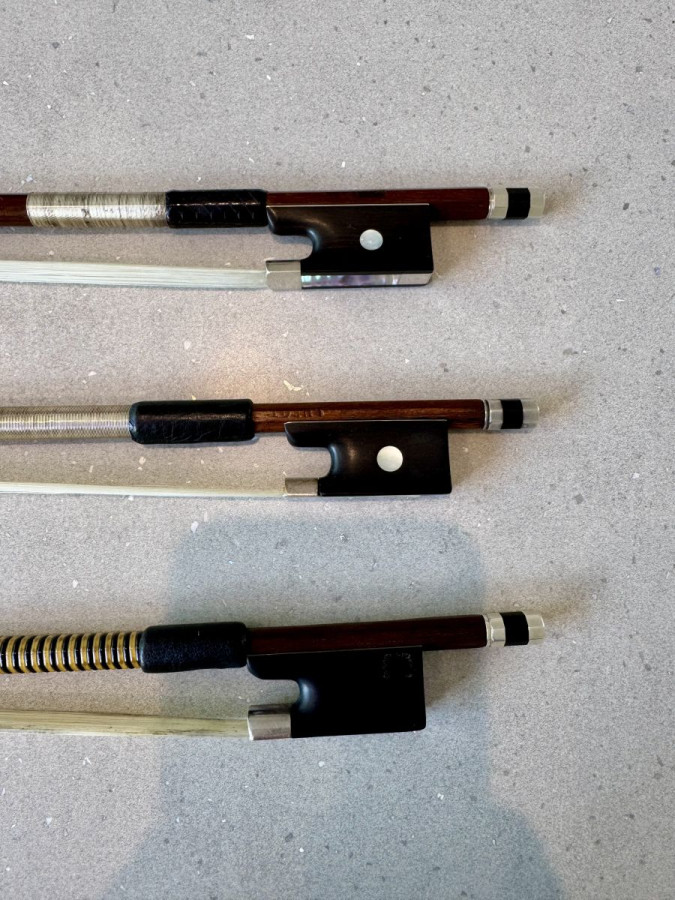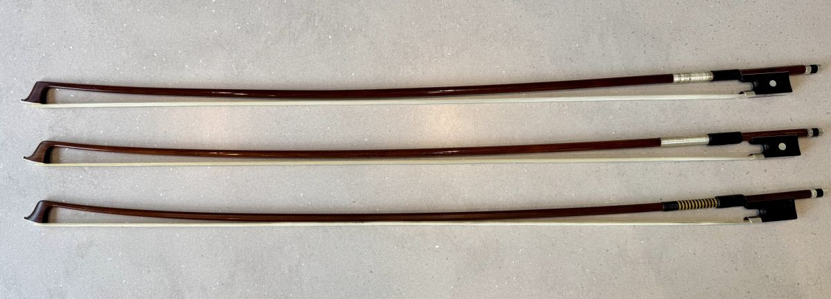 3 x German Violin Bows (inc. H. R. Pfretzschner)