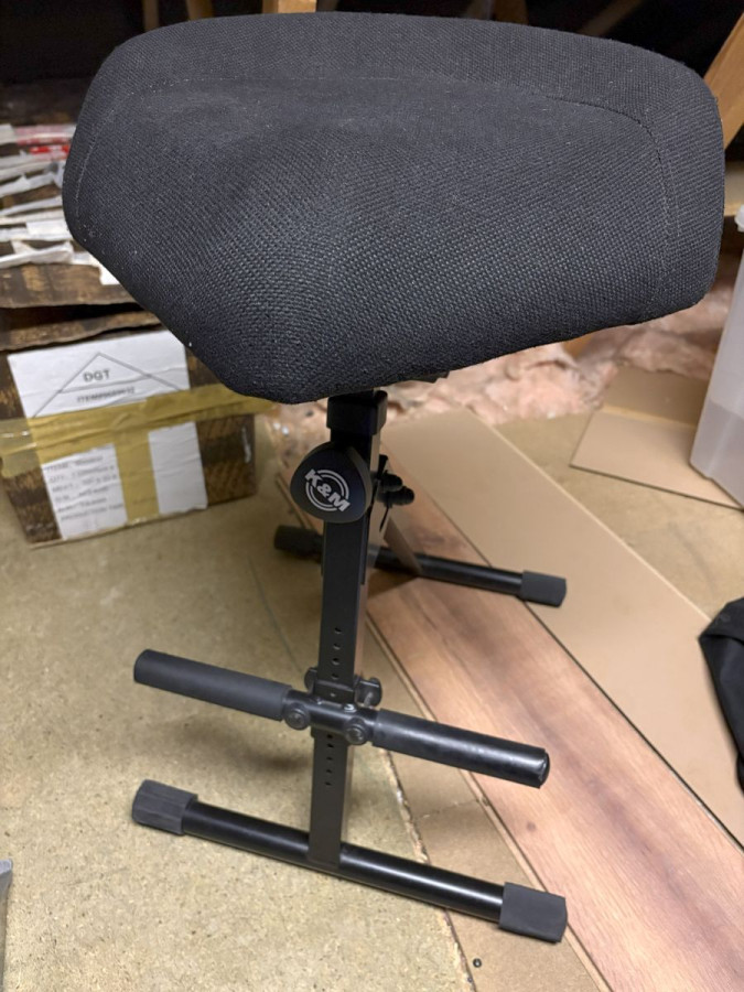 K&M double bass stool: RAT music stand with case: "Mighty Bright" stand light
