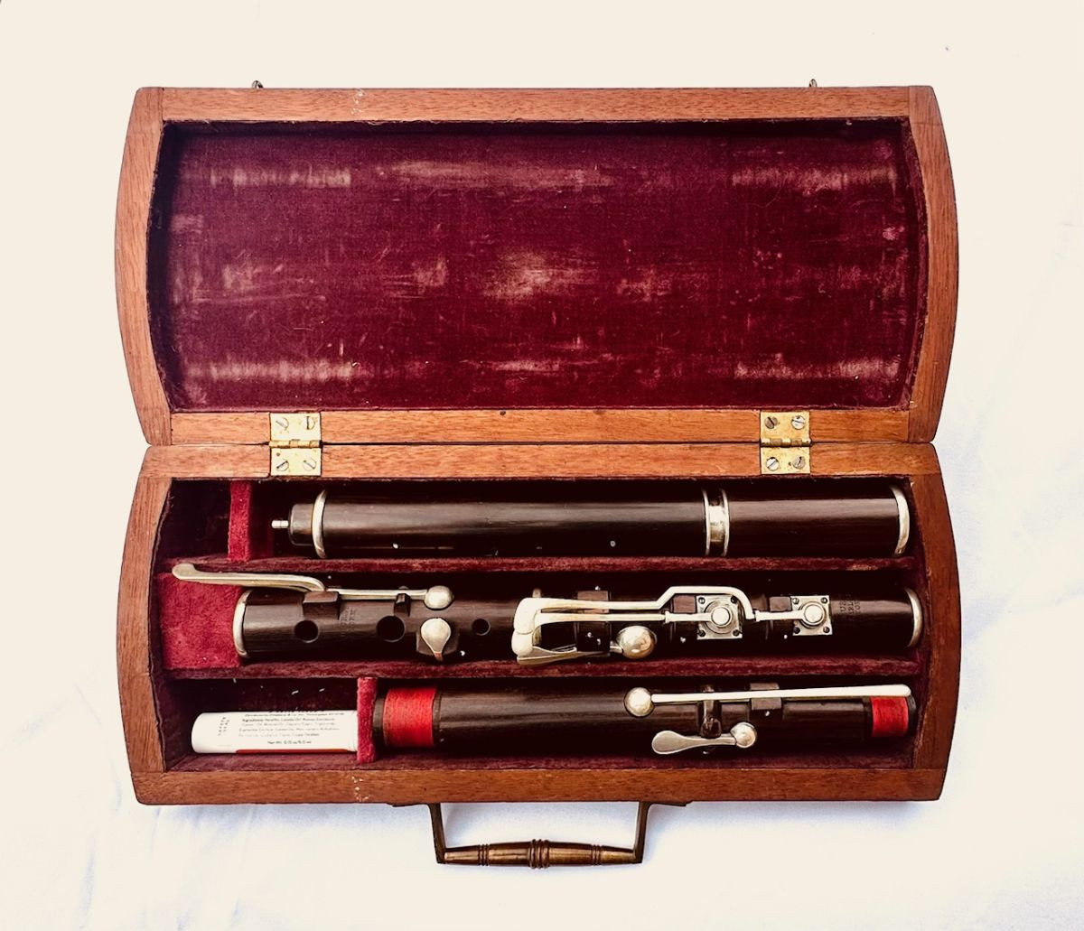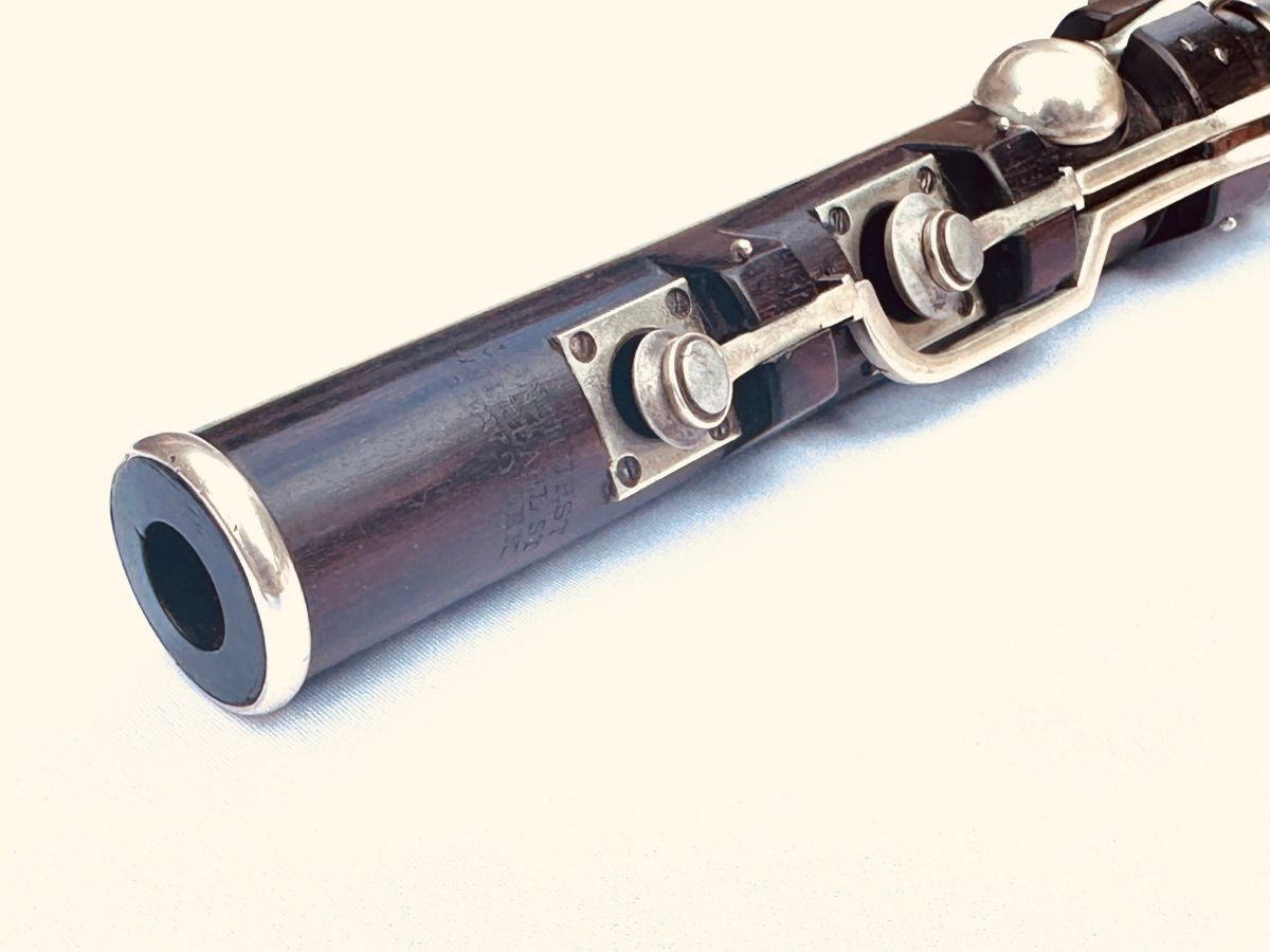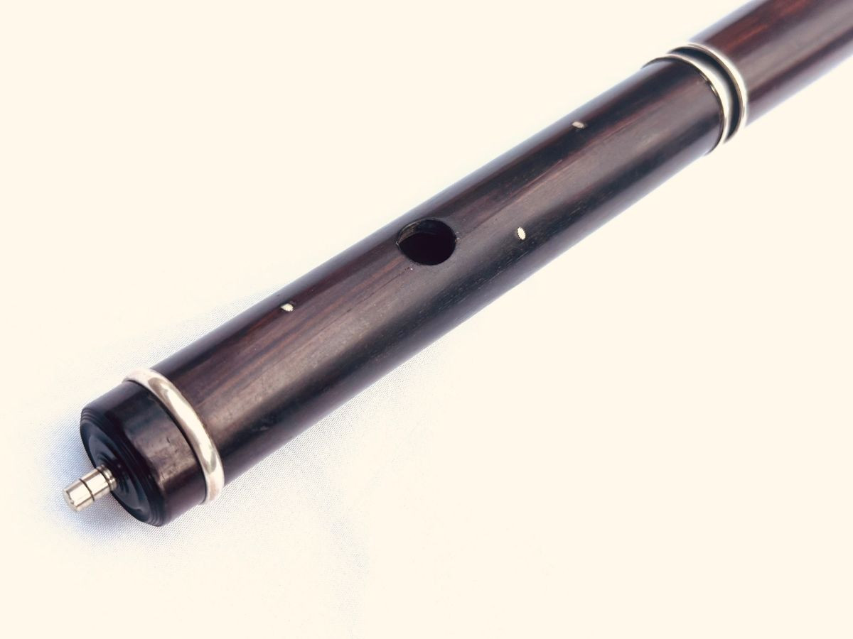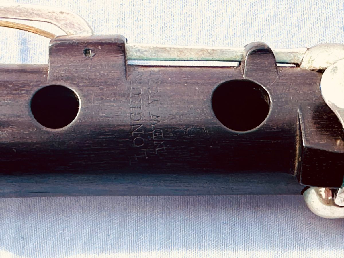 This flute is an enigma. It is stamped Longhurst, New York but it is clearly an imported flute from London, around 1839. I believe the maker is Henry Wylde, who originally made flutes for the esteemed Rudall & Rose in London. He also made them for several makers and dealers that were re-stamped like this one. The flute is made from Cocus wood and the keys and rings are silver. Cocus wood is the best tone for wood flutes. It grows in the Jamaican islands, but was pretty much wiped out in the 19th century. This flute is in great condition, considering its age!