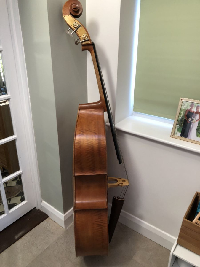 This is a beautiful modern,German,Three Quarter size Bass owned by a retired professional musician and has been set up by Malcolm Healey.