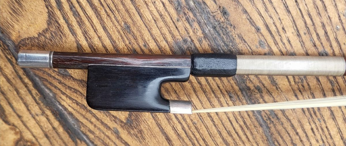 Superb ebony silver cello bow by James Tubbs (Jas Tubbs) 1910. Perfectly balanced at 82.5g, 72cm, great playing and sound qualities. Strong straight stick dark pernambuco. Very good condition, thumb filled, all parts original. P. Guillaume certified.