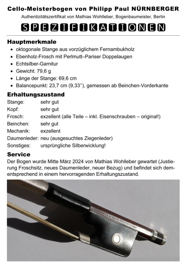 Feinster & seltener Cello-Meisterbogen von Philipp Paul Nürnberger (um 1915) mit Echtheitszertifikat