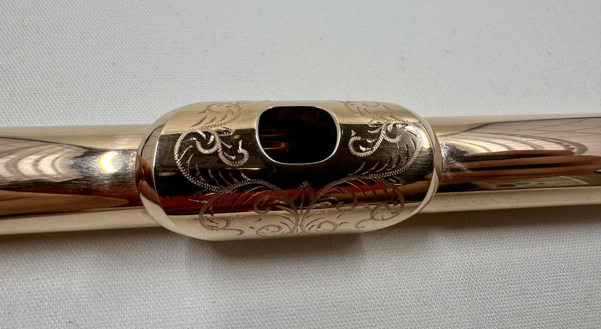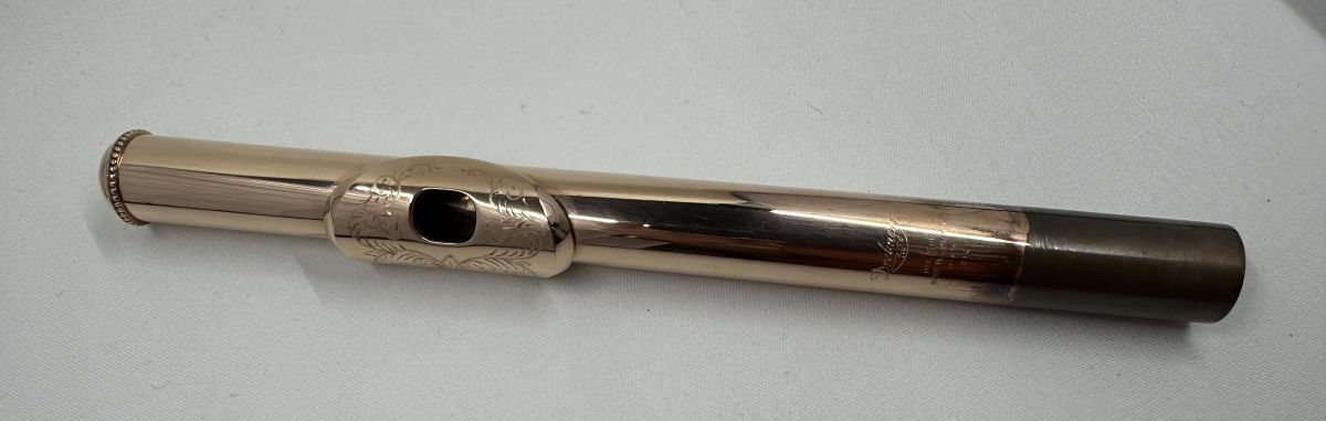 Original Drelinger 14k Gold Headjoint with 14k lip plate, riser, and crown with original case. Excellent condition - do not miss this chance to purchase this rare headjoint, that would make a great addition for an experienced player and/or collector!
