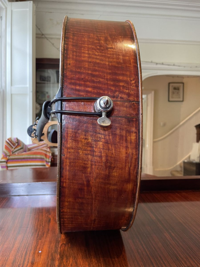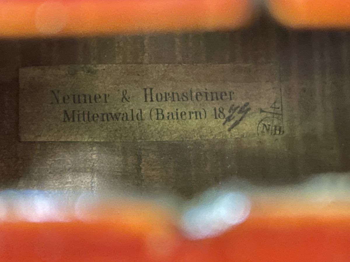 This splendid full-size (4/4) cello, fashioned in 1879 by the esteemed Mittenwald atelier of Neuner & Hornsteiner. Attractively aged golden-brown varnish developing graceful patina, and a warm, lyrical tone. With over a century of subtle aging, this instrument offers depth and resonance.